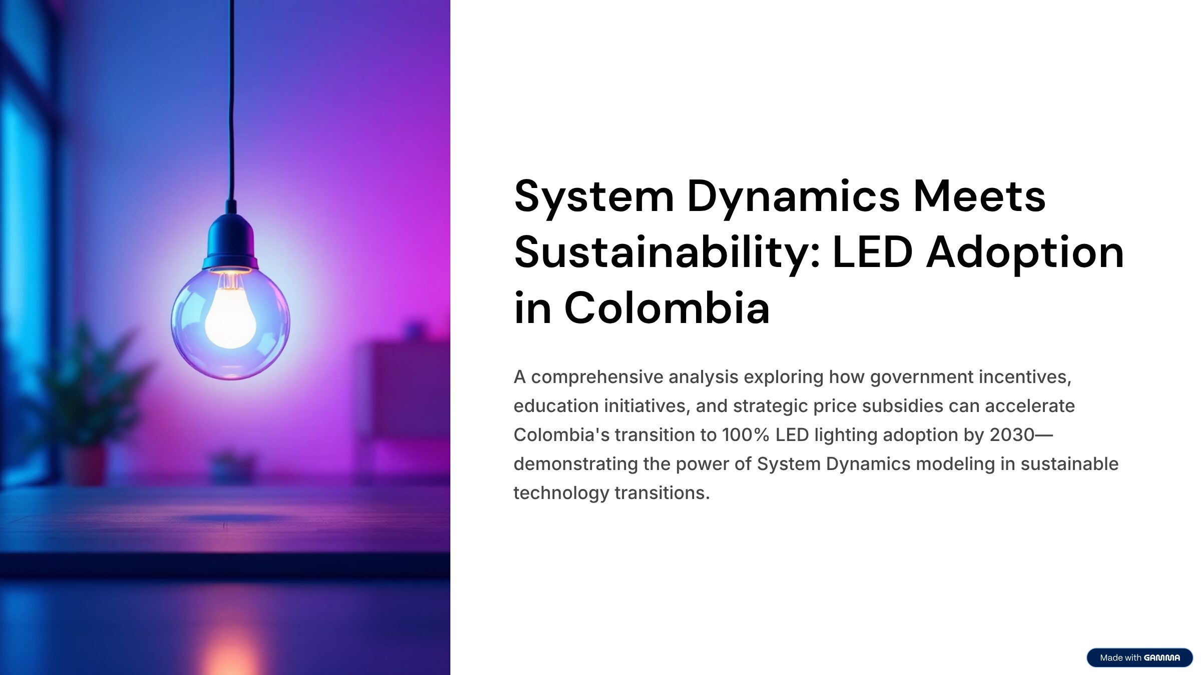 This report outlines the findings of the 2016 research paper titled «Technological LED Lighting Adoption: A System Dynamics Approach,» authored by C. Henao and M. Becerra. The study utilizes System Dynamics (SD) to analyze the transition to LED lighting in Colombian households, focusing on urban consumption, market adoption, and the resulting impact on energy expenditure.
